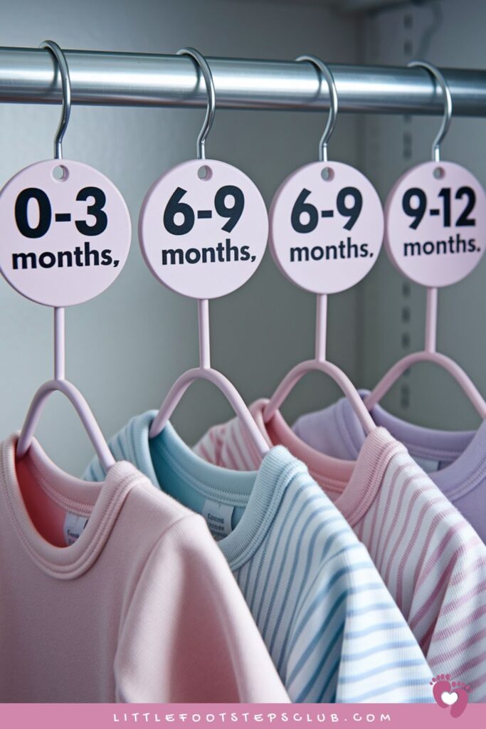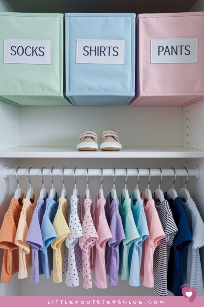 • Use labeled boxes or baskets for sizes your baby hasn’t grown into yet.