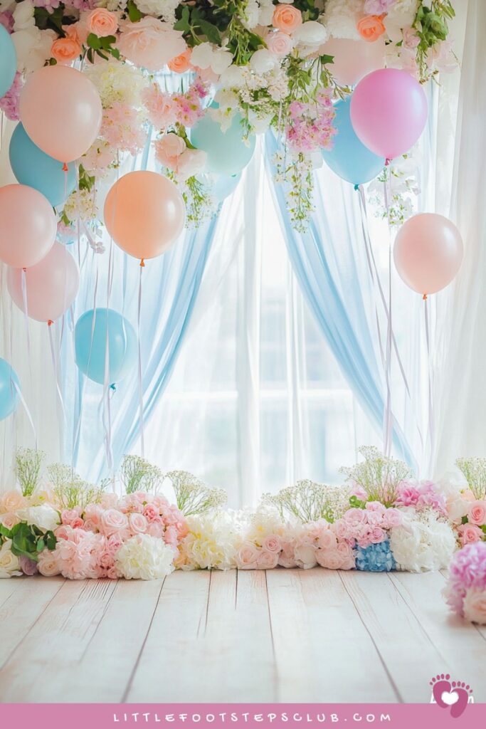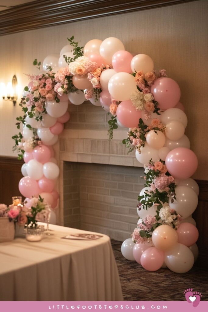 22. Pastel Balloon Garland with Flowers