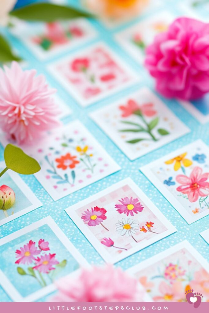Play baby shower bingo using floral illustrations or themed icons.