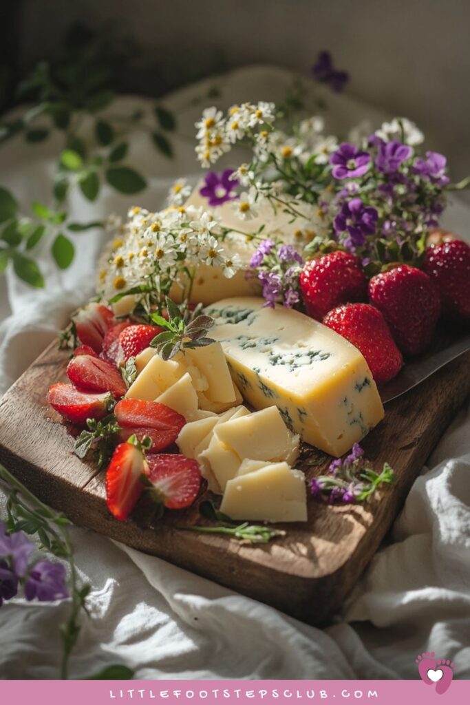 Add edible flowers to your cheese board for a fresh garden vibe.