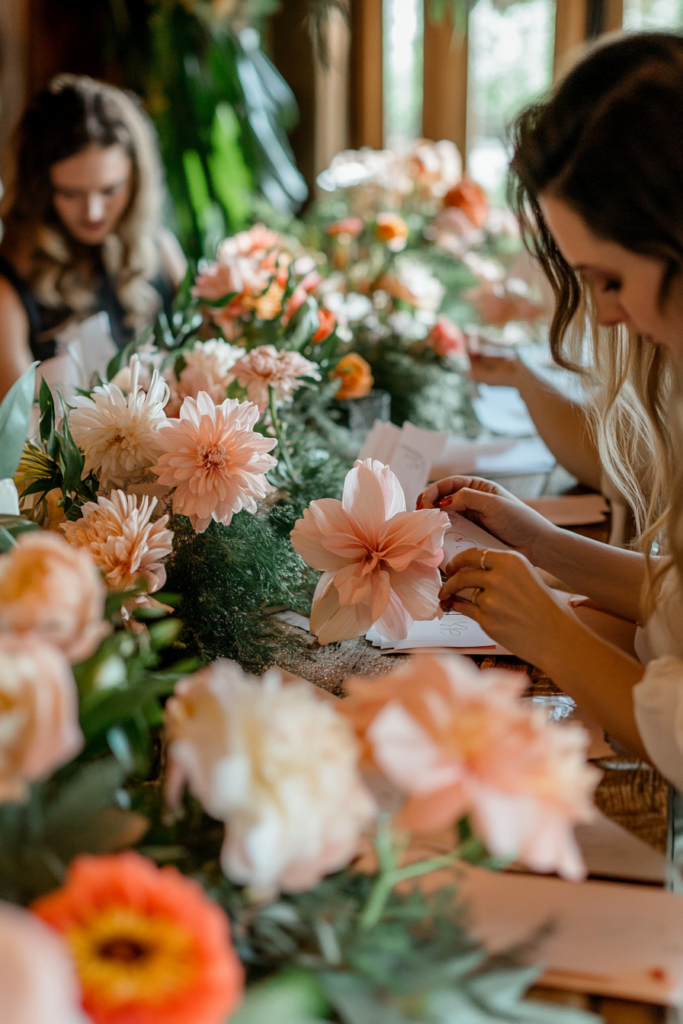 Guests write down blooming wishes on floral stationery or plant-shaped cards.